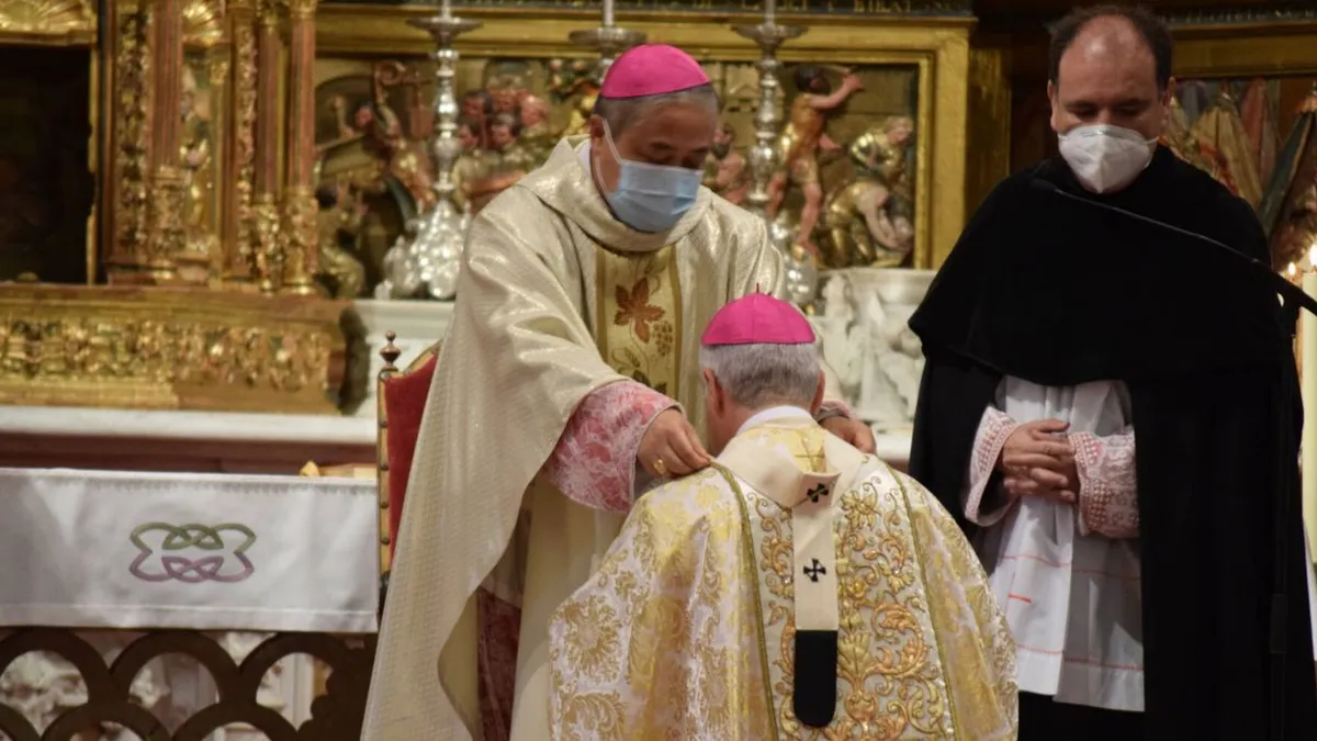 Pasados poco más de siete meses desde su llegada a la archidiócesis de Burgos, don Mario Iceta Gavicagogeascoa ha recibido hoy, de manos del nuncio de Su Santidad en España, monseñor Bernardito Auza, el palio arzobispal, un distintivo litúrgico que el arzobispo vestirá en los límites de la provincia eclesiástica y que es símbolo de comunión entre los obispos metropolitanos y el Santo Padre.