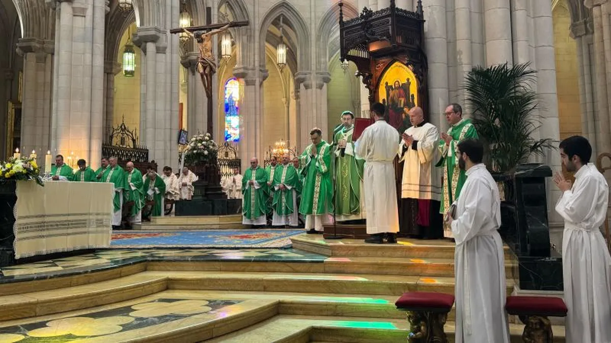 «Que esta Eucaristía sea una oración para pedir al Señor Jesús que sostenga y acompañe en su misión al Papa Francisco, y para que, en este tiempo de fragilidad, fortalezca a su Iglesia en la unidad y en la oración en torno a la sede de Pedro». Así lo ha expresado el cardenal José Cobo, arzobispo de Madrid en la celebración de este domingo 23 de febrero en la catedral de la Almudena. Los diáconos de la diócesis (incluidos los permanentes) han celebrado la Misa jubilar coincidiendo con el Jubileo celebrado en Roma, en el que se han ordenado 50 diáconos permanentes, entre ellos dos de la diócesis de Madrid: Willy Vargas y Alejandro de la Concha.