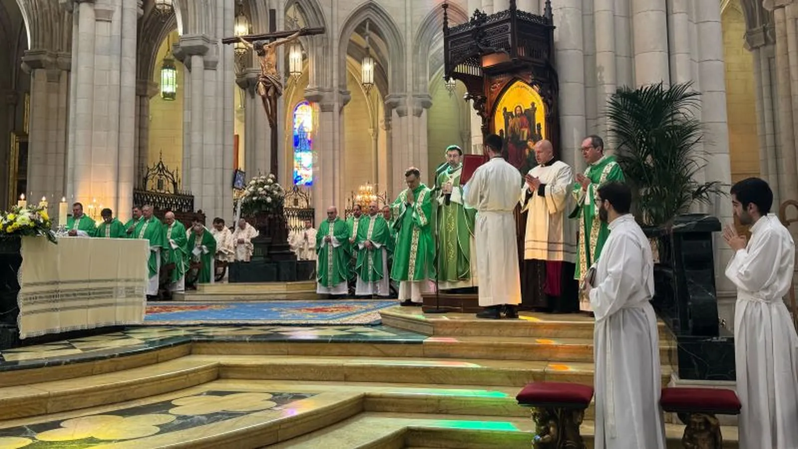 Antes de comenzar la Eucaristía, el arzobispo de Madrid ha querido incidir en «la unidad de la Iglesia y la oración en torno a la Sede» recordando la sede petrina y pidiendo a los fieles presentes «rezar por el Papa Francisco, como tantas veces nos ha recordado él».
