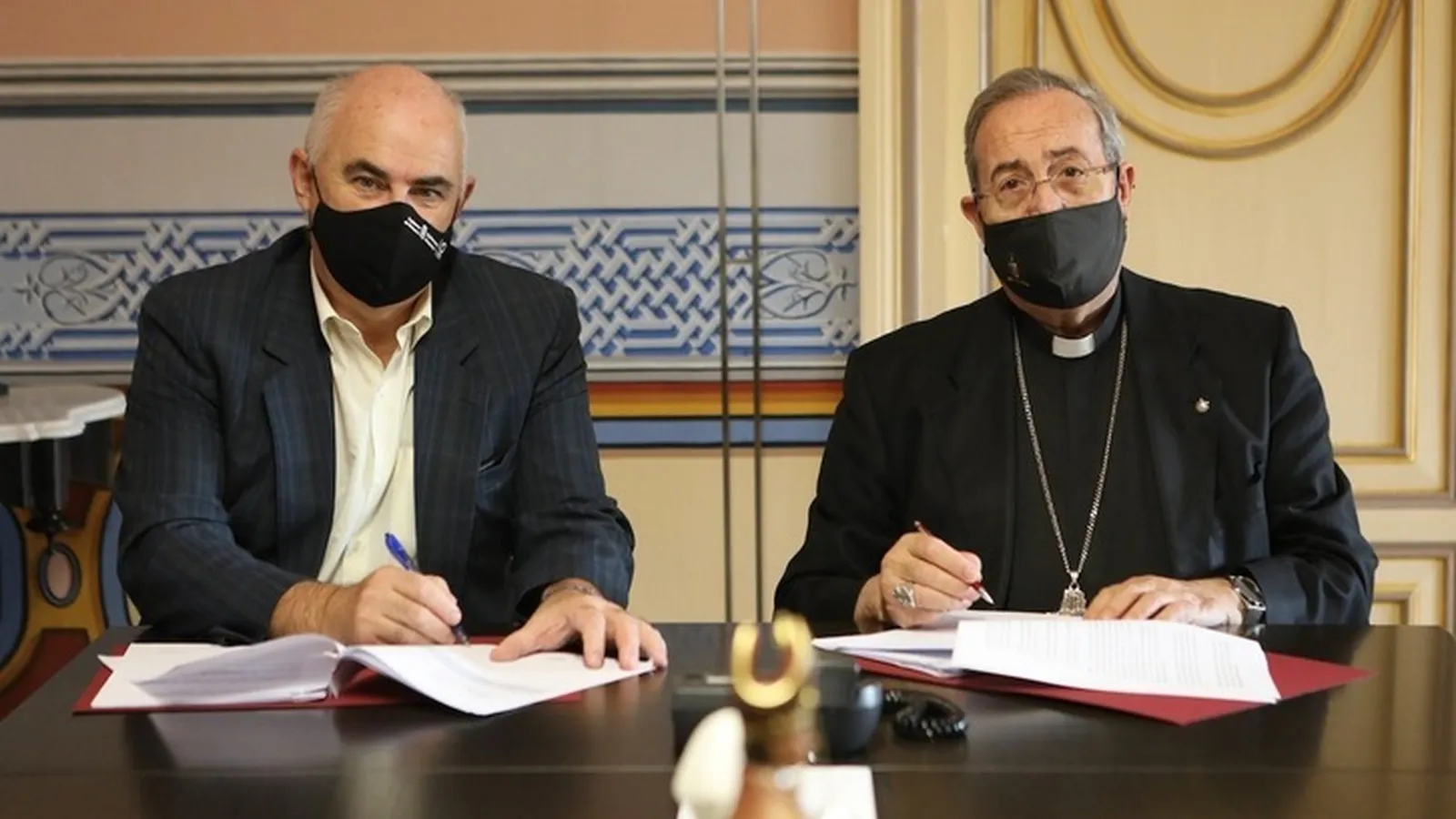 El Vicepresidente navarro y el arzobispo Francisco Pérez firman el acuerdo