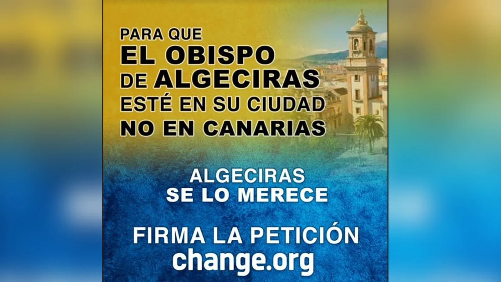 Javier Ortega da un paso más adelante en su campaña para recuperar el Obispado para Algeciras. A través de la plataforma para reivindicar causas y adhesiones Change.org se ha habilitado un espacio para quienes deseen apoyar esta causa puedan hacerlo cómodamente de forma digital, en un procedimiento fácil, simple y que tan sólo lleva unos breves momentos a través del este enlace con el eslogan “Para que el Obispo de Algeciras esté en su Ciudad, no en Canarias. Algeciras se lo merece”.