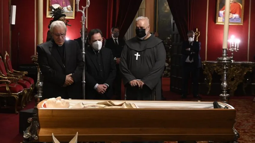 A las ocho y media se abrió paso a los fieles en la capilla ardiente que se instaló en el Salón del trono del Arzobispado. Bajo el escudo del actual titular de la diócesis de San Isidoro, presidido por un gran crucifijo dorado y flanqueado por cuatro hachones, se instaló el féretro con los restos mortales del cardenal revestido de pontifical. Entre las autoridades que desfilaron ante el féretro destaca la ministra de Justicia, Pilar Llop, que departió varios minutos con el arzobispo y el hermano Pablo.