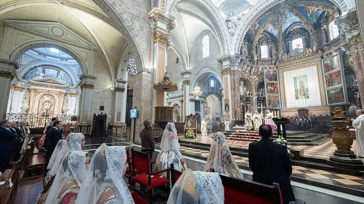 En la eucaristía, celebrada en la Catedral de Valencia, el arzobispo de Valencia ha agradecido la presencia de las Falleras Mayores de Valencia, de la Junta Central Fallera, del concejal de Fallas y resto de autoridades, al Gremi dels Mestres Fusters así como de las representantes de las Hogueras de Alicante, la Magdalena de Castellón, y de las Casas Regionales también presentes.