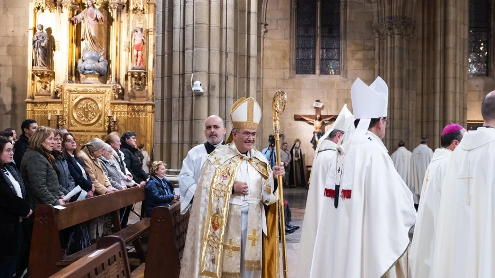 En el presbiterio, junto al Cardenal José Tolentino de Mendonça y al obispo diocesano Mons. Fernando Prado Ayuso, concelebraron el Arzobispo de Pamplona y Tudela, Mons. Florencio Roselló Avellanas, y el Obispo de Vitoria, Mons. Juan Carlos Elizalde, además de un numeroso grupo de sacerdotes de la Diócesis. Repartidos por el templo, asistieron también religiosos y religiosas, miembros de la vida consagrada que junto con muchos laicos llenaban la Catedral.