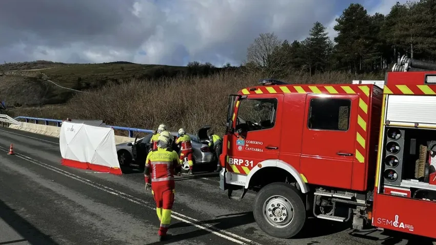 Al lugar acudieron, entre otros servicios de emergencias, bomberos del 112 pertenecientes al parque de Reinosa que han retirado al vehículo de la vía.