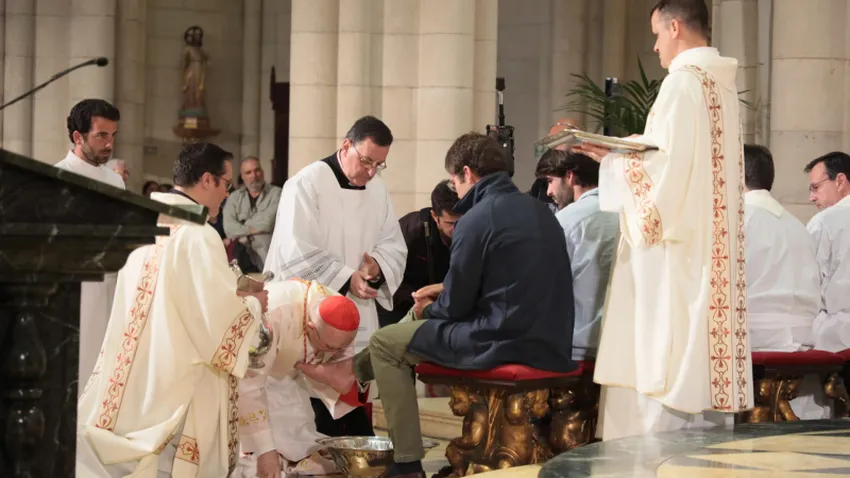Sobre esto, el arzobispo les ha recordado en la homilía que precisamente «Jesús se arrodilla delante de nosotros» y les ha hecho ver la importancia de «ponerse al servicio de los demás». Refiriéndose a la última cena, les ha trasladado cómo Jesucristo «se fía de nosotros» y cómo «se entrega a todos en la cena». «Él no pide carné para acoger en su mesa, viene para todos y se sienta con todos y cada uno».