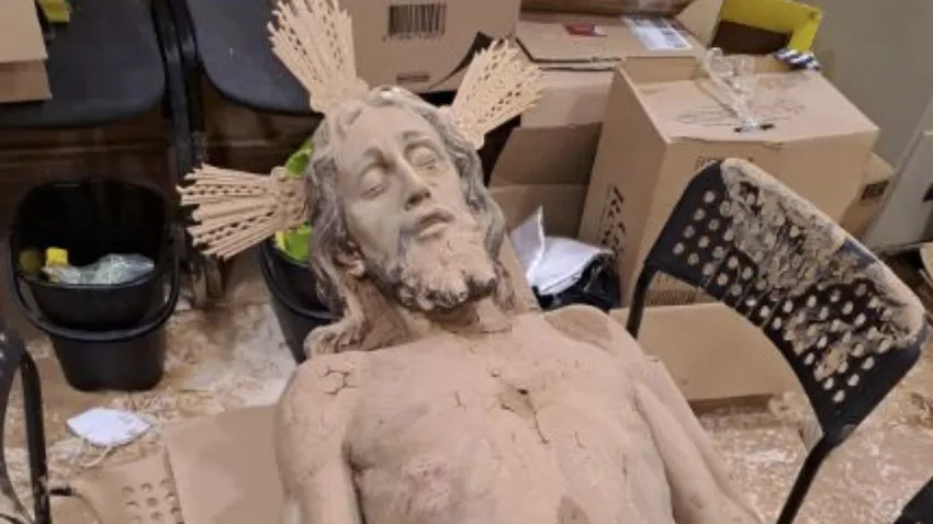 Lo estaban sacando cuando les paré. Fue entonces cuando decidí fotografiarlo, porque me pareció una imagen emblemática de lo que estábamos viviendo. No tenía ni idea de que esa imagen se haría viral. Dio, a través de un periodista que la tomó, la vuelta al mundo. Recibí mensajes de Canadá, Argentina, Rumanía. También contactaron conmigo conocidos restauradores que se ofrecieron a recuperarla, pero decidimos dejarla así, mancillada, como una señal de aquel 29 de octubre que quedará en la memoria de todos. Hoy nos gusta todo lo que es nuevo y perfecto. Tendemos a ocultar, por miedo o hipocresía, los signos del dolor, del sufrimiento, de la enfermedad, de la muerte. Restaurar ese Cristo sería simplemente ocultar lo que hemos vivido, y no queremos hacerlo.
