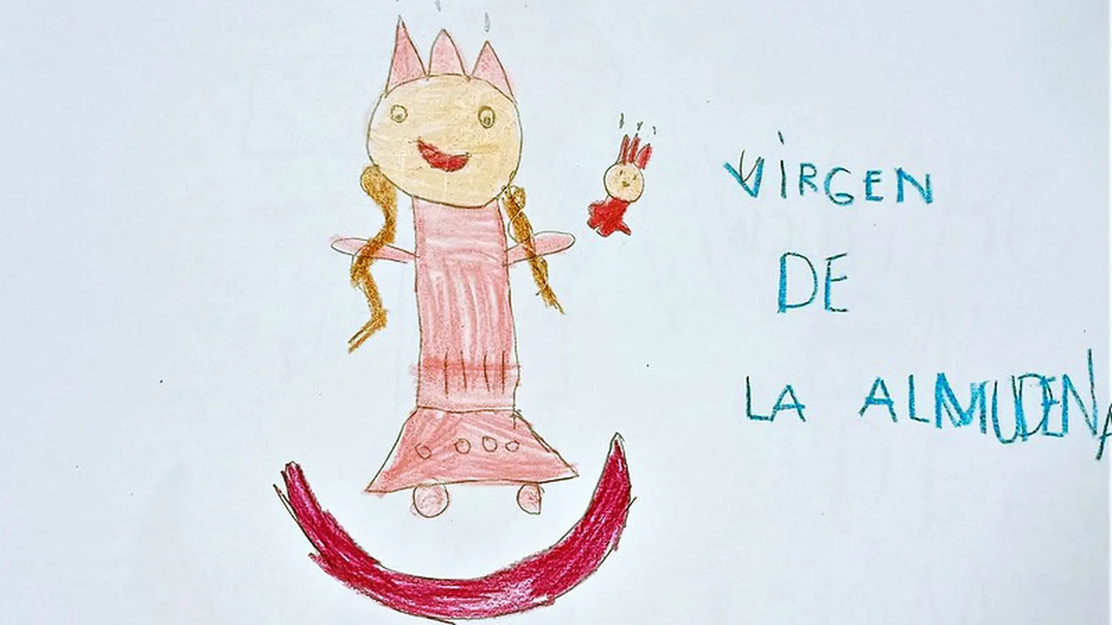 (Archimadrid).- Alegría, Jorge, Lucía, Paula, Elisa, Rocío, Álvaro… Los más pequeños llevan ya días preparando sus dibujos para la Virgen de la Almudena, en este año tan especial en el que la ofrenda de flores se ha sustituido por una ofrenda virtual. Con toda su imaginación e ilusión han utilizado mayoritariamente las plantillas propuestas por el Museo Catedral de la Almudena (Virgen, templo o historia) para regalarle a la patrona de Madrid sus creaciones. Pero también han aprovechado las nuevas tecnologías para hacer vídeos, como el caso del colegio diocesano Nuestra Señora de la Paz, o incluso un muro virtual como el elaborado por el colegio MM Concepcionistas de Princesa.