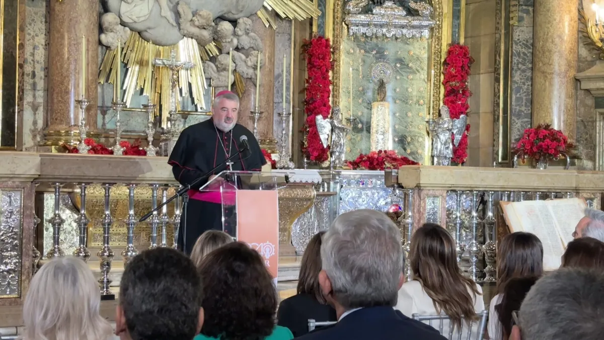 A continuación ha tomado la palabra a alcaldesa de Zaragoza, Natalia Chueca, para señalar el bimilenario de la Venida de la Virgen como un «acontecimiento único en la historia de la cristiandad» y un poderoso símbolo de unión entre todos los pueblos. Resaltó el inmenso legado y cariño que la Basílica y la Virgen generan, a la que describió como «fuerza, madre y guía» de los zaragozanos, mencionando además la histórica visita de Juan Pablo II en 1982 como precedente de su relevancia mundial y su afirmación: «Qué pequeña es y qué fuerza tiene». La alcaldesa transmitió el sentimiento de responsabilidad como herederos de esta historia, asegurando que la celebración «marcará nuestro presente y futuro».