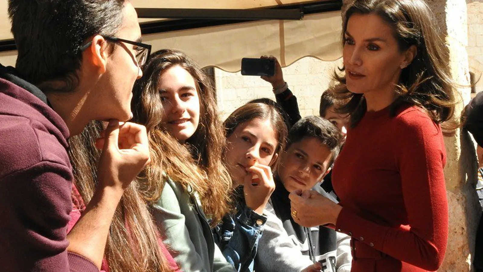 El director de El Hueco, Joaquín Alcalde, ha dirigido unas palabras de bienvenida. Esta ponencia ha empezado a las 12.00 horas, mientras que la Reina Doña Letizia ha llegado a la villa de El Burgo en helicóptero, al campo de fútbol, una hora antes. Desde ahí, en coche oficial, se ha dirigido hasta la plaza de la Catedral, donde ha saludado y se ha tomado fotografías con muchas de las aproximadamente 500 personas que la estaban esperando.