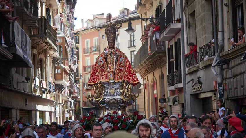 Previamente, minutos antes de las 10 horas, la Corporación municipal, vestida de gala y encabezada por el alcalde, Joseba Asiron, ha salido de la Casa Consistorial para recoger al Cabildo de la Catedral, y a continuación desfilar hacia la iglesia de San Lorenzo. Desde allí, el santo ha salido en procesión por las calles de la parte vieja de la ciudad entre los aplausos de los pamploneses.