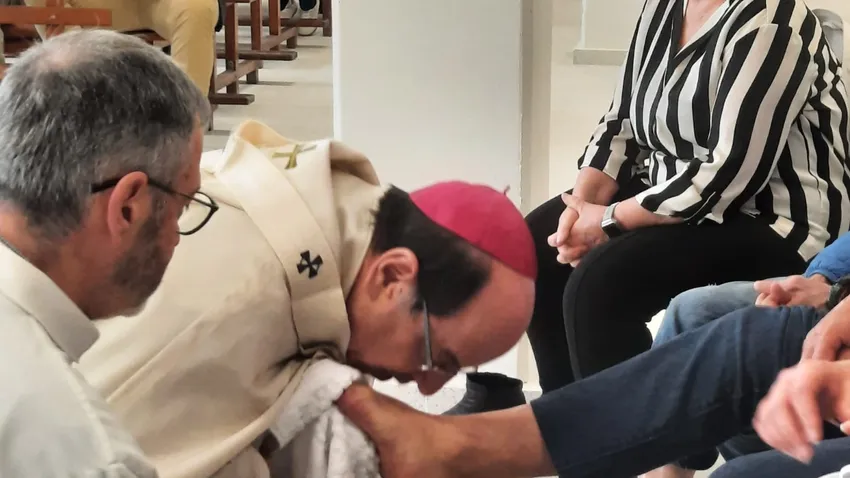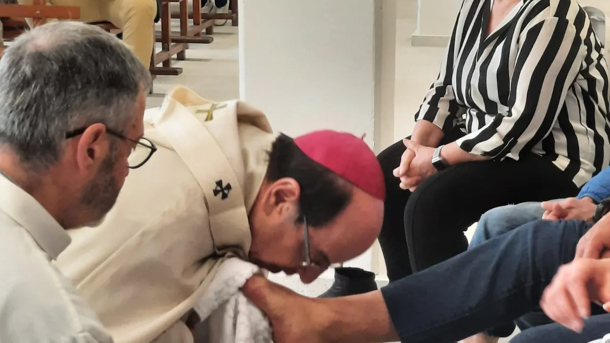 El arzobispo de Pamplona y obispo de Tudela, Florencio Roselló, ha expresado su felicidad tras lavar los pies a trece internos de la cárcel de Pamplona, diez hombres y tres mujeres, con motivo de la celebración del Jueves Santo en el centro penitenciario de Pamplona. Este gesto ha tenido lugar durante la misa que ha comenzado a las 10:15 horas, con la asistencia de varias decenas de presos y presas, personal del centro, un grupo de voluntarios de la Pastoral Penitenciaria y los capellanes de la prisión.