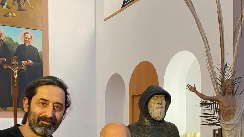 El escultor Alfredo Llorens ha realizado esta imagen de San Charbel orante, trabajando la dimensión del misterio con ternura y misericordia.