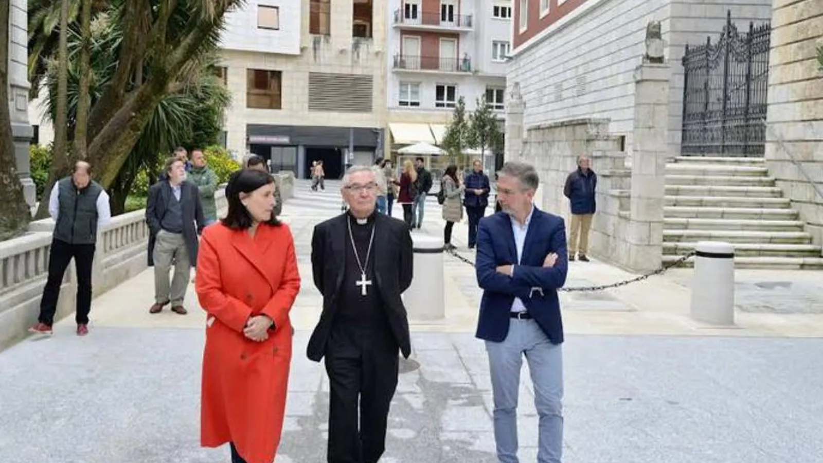 La alcaldesa de Santander, Gema Igual, junto con el obispo han visitado el fin de obras de remodelación de la calle Obispo Juan Plaza, que ha contado con un presupuesto de 222.000 euros y un plazo de ejecución de cuatro meses por la empresa Servicios y Obras del Norte (SENOR)