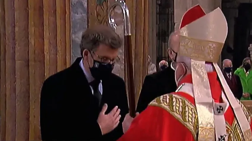 Llegaron todos al Altar Mayor entre sonidos de “motetes” y músicas de órgano, comenzando, sentado el Arzobispo ya en su sede, la Misa Estacional de la Traslación, estando muy cerca el Cardenal Rouco. Sólo vimos dos mitras: la del Arzobispo y la del Cardenal. Después de las aleluyas y de las lecturas litúrgicas, el delegado regio, Núñez Feijóo, de pie, pronunció la Invocación Ofrenda al Santo Patrón, recordando lo dicho por el Rey en julio último, que, para eso, es su delegado. Habló del Covid, de la Unión europea, de la Corona de España, con su “papel unificador e institución constitucional refrendada por el pueblo”. El señor Arzobispo, de pie, se refirió a la reciente restauración catedralicia, a la Fiesta de hoy del Apóstol, a la necesidad de cuidar la salud física y espiritual, y a que la crisis ha de acercar los corazones, partiendo de la dignidad de todo ser humano.