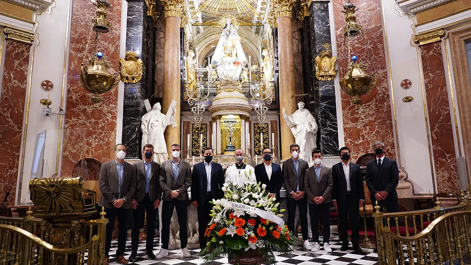 El Valencia CF realiza una ofrenda floral a la patrona ante el inicio de la temporada