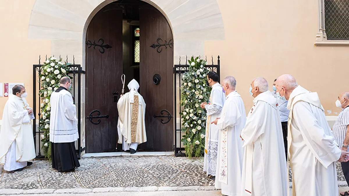 Esta celebración, histórica para la parroquia, comenzó en el exterior del templo, y una vez dentro, en procesión solemne, comenzó la misa, oficiada por el Obispo y concelebrada por el párroco Pedro Miret.