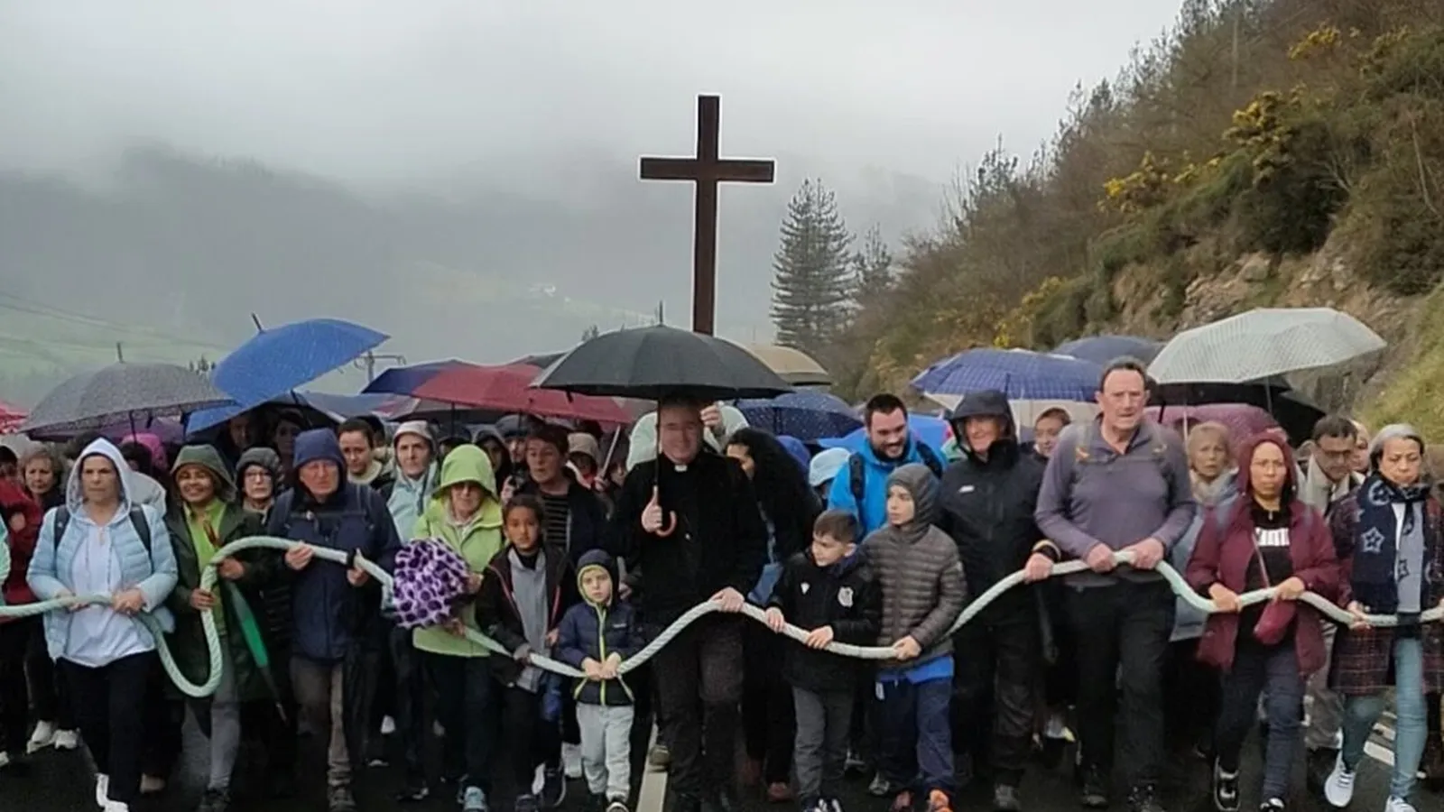 Los participantes que podían realizar la subida a pie han realizado el Vía Crucis caminando, mientras que aquellos con dificultades de movilidad han subido en autobuses hasta Arantzazu. Durante la subida, unos altavoces emitían la celebración, permitiendo a todos los asistentes mantenerse en comunión y oración independientemente de si estaban caminando o esperando en Arantzazu.