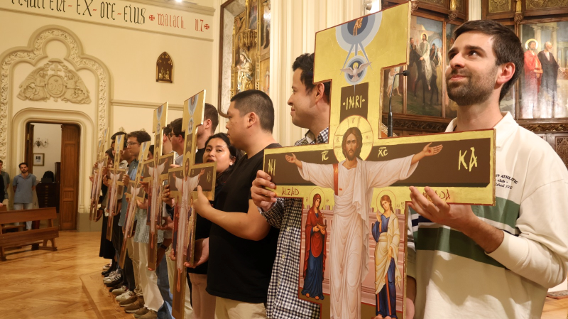 (Archimadrid).- Para Adrián, joven de la parroquia Jesús y María de Aluche, el pasado viernes marcó un momento importante en su preparación para la visita del papa a Madrid. Durante la vigilia en el Seminario Conciliar con motivo de la Jornada Mundial de Oración por las Vocaciones tomó en sus manos, junto con jóvenes de todo Madrid, una de las ocho copias de la Cruz Peregrina que se ha elaborado para preparar la vigilia con León XIV del próximo 6 de junio. «Me gustó ir a por ella e iniciar este camino» representando a la Vicaría VI.