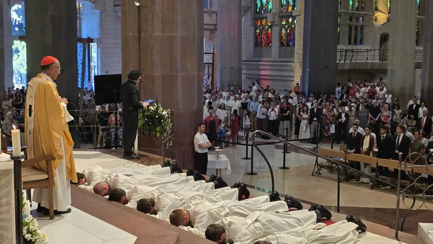 (Església de Barcelona).- La basílica de la Sagrada Familia de Barcelona ha acogido la tarde del domingo 20 de julio la ordenación sacerdotal de seis jóvenes diocesanos —Mn. Joan Piñol, Mn. Xavier Campmany, Mn. Javier Casals, Mn. David Lucena, Mn. Santiago Claret y Mn. Guillem Lisicic— y un religioso —Mn. Pablo Jesús Jorge Díaz— de la congregación de los Hijos de la Sagrada Familia, fundada por san Josep Manyanet. La ceremonia ha sido presidida por el cardenal Juan José Omella, arzobispo de Barcelona, y concelebrada por sus obispos auxiliares, Mons. David Abadías y Mons. Javier Vilanova.