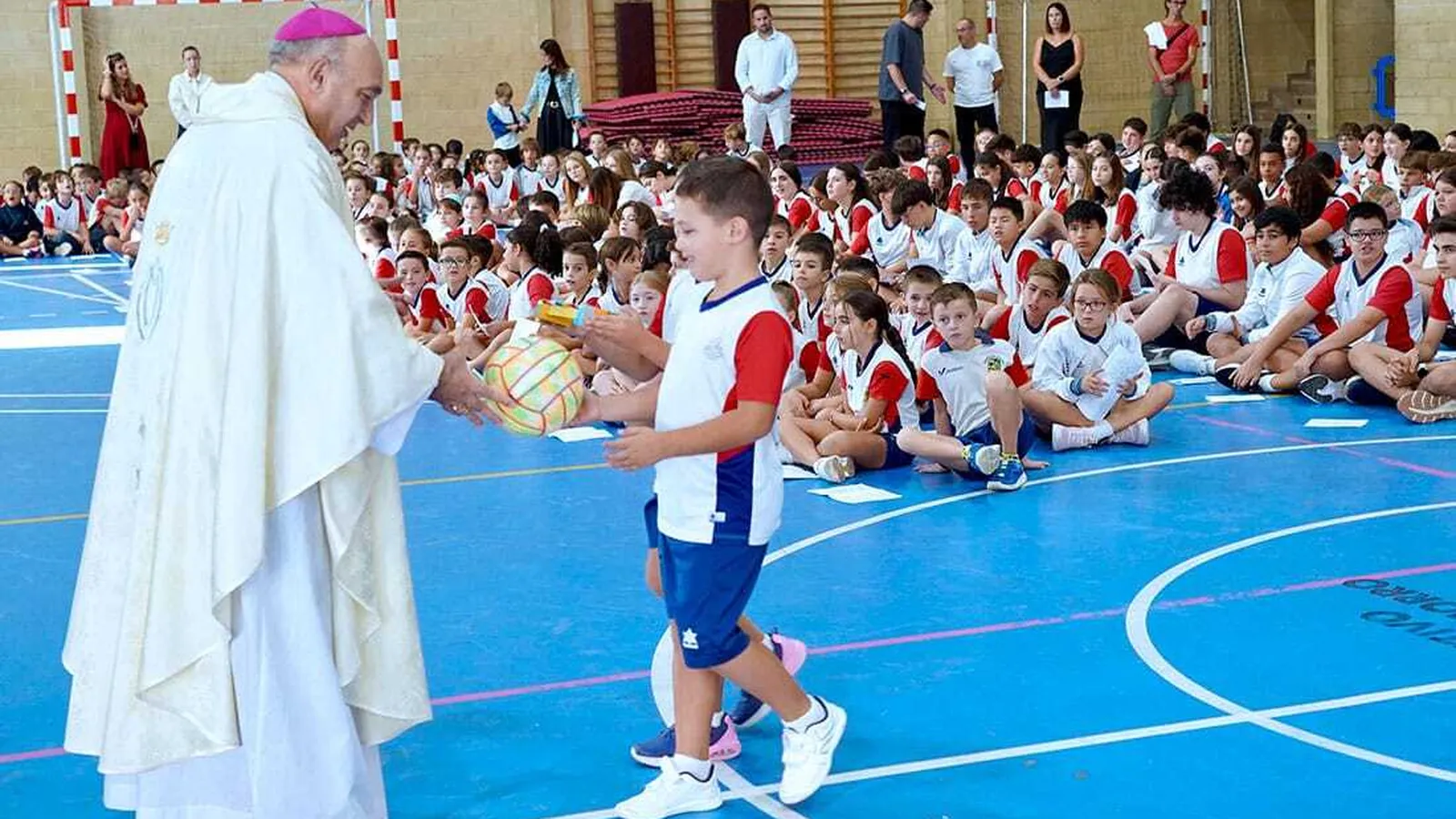 El arzobispo ha presidido una eucaristía con todos los alumnos en el polideportivo del Colegio, en la que ha manifestado que «hay que dar gracias a Dios por haber podido recuperar el colegio, la formación, por el apoyo de los profesores que os ayudan a ser cada vez mejores, y porque a pesar de las dificultades que habéis sufrido, vivimos en un lugar donde no hay guerra, donde tenemos paz, mientras hay muchos niños que no tienen acceso a la educación, tenéis familias y profesores, por eso, tenemos que estar agradecidos».