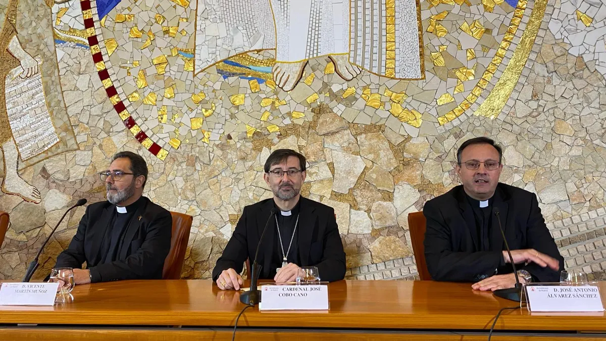 "Una noticia que ya estaba circulando desde primeras horas, con expectación". Así comenzó el cardenal Cobo la presentación de sus dos nuevos auxiliares. En la sala capitular del Arzobispado de Madrid, bajo los mosaicos del polémico Rupnik, el arzobispo de Madrid presentó a José Antonio Álvarez Sánchez y Vicente Martín Muñoz, a quienes agradeció "su sí y su generosidad". Ambos serán ordenados el 6 de julio en la catedral de La Almudena.