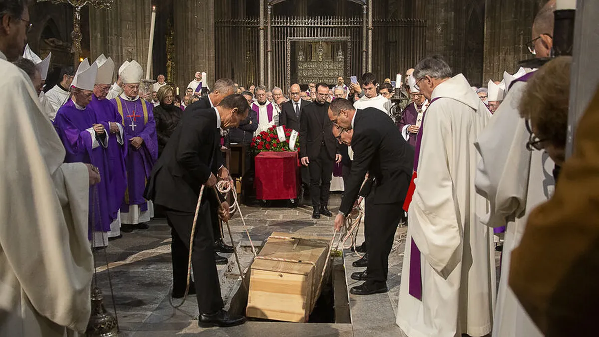 Terminada la misa, se ha procedido a dar sepultura al cuerpo del obispo Carlos, en el centro de la nave, entre el presbiterio y el órgano, justo al lado de la tumba del obispo Francesc Pardo, fallecido el 31 de marzo de 2022.