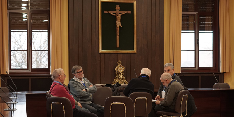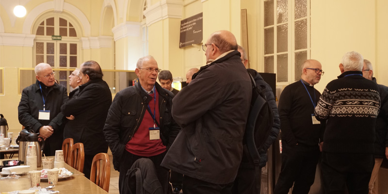 (Archimadrid).- Si tuvieran una profesión civil, los cerca de un centenar de sacerdotes que se reunían en la mañana del lunes, 26 de enero, en el Seminario Conciliar de Madrid, se hubieran ya jubilado. Pero ellos siguen al pie del cañón en la diócesis como párrocos, capellanes, vicarios parroquiales... Es el clero que suma entre 40 y 49 años de ordenación, y que acudían a la penúltima preasamblea presbiteral en camino a CONVIVIUM.