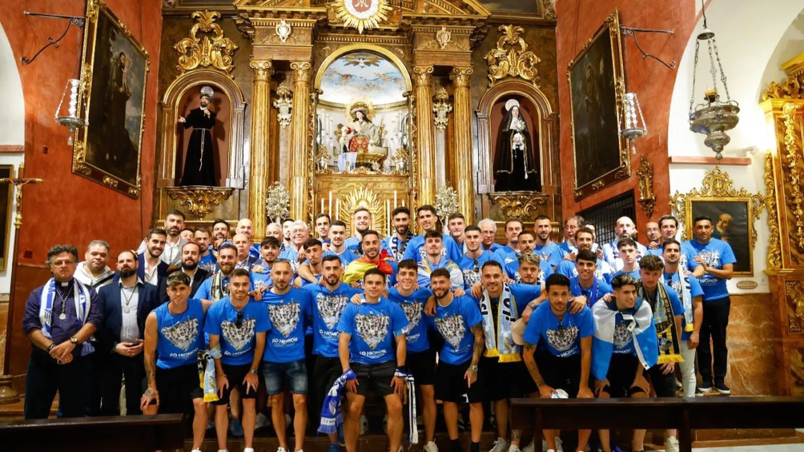 El Málaga CF comienza y concluye la celebración de su ascenso a Segunda División dando gracias al Señor en la parroquia de San Pablo, ante la imagen del Cautivo; y a la Virgen María, en la parroquia de la Divina Pastora, ante la imagen de la Patrona del Deporte