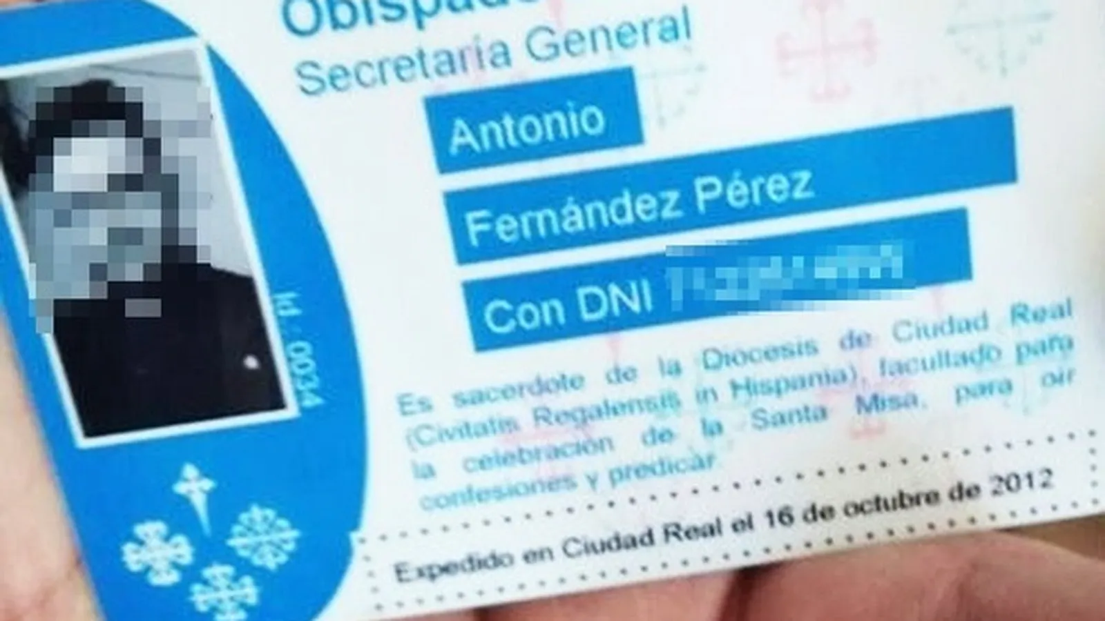 «Somos pocos y todos nos conocemos» explicó Jiménez, en referencia a que el nombre y la imagen que aparece en ese carné no corresponde con ningún de los alrededor de 180 párrocos de Ciudad Real.