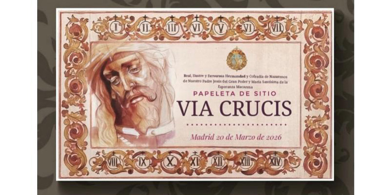 Las salidas procesionales del Jueves Santo se completan con el Gran Poder y la Macarena de Madrid, que acaba de hacer público el recorrido de su estación de penitencia. Asimismo, los hermanos pueden ya recoger sus papeletas de sitio, que este año ha diseñado Francisco Rovira, del Taller Daroal de Sevilla. Se trata de una orla con las 14 estaciones del vía crucis que enmarca la pieza principal, el rostro de Muestro Padre Jesús del Gran Poder. Además, la hermandad estrenará el 20 de marzo nuevas andas de traslado y vía crucis que serán portadas por los costaleros.