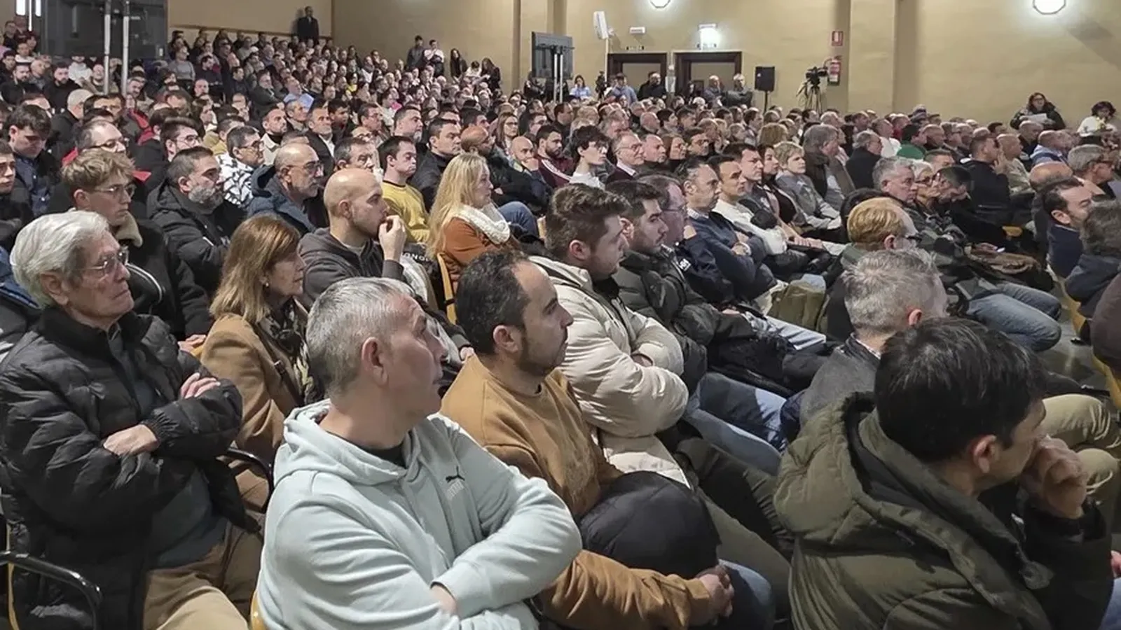 Inicialmente, la asamblea comenzó con 428 personas que llenaron el aforo del salón de actos y más de 200 en un gimnasio próximo en el que se retransmitía en directo y en el que también se podía votar.