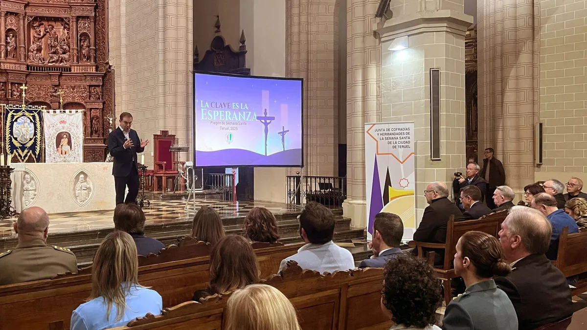 El acto de este sábado en la Catedral de Teruel estuvo presidido por el obispo, José Antonio Satué, y contó con la presencia de la alcaldesa, Emma Buj, de la vicepresidenta primera de la Diputación de Teruel, Beatriz Martín, la delegada del Gobierno de Aragón, Rosa Sánchez, así como otras autoridades y representantes de las ocho cofradías y hermandades de la Semana Santa.