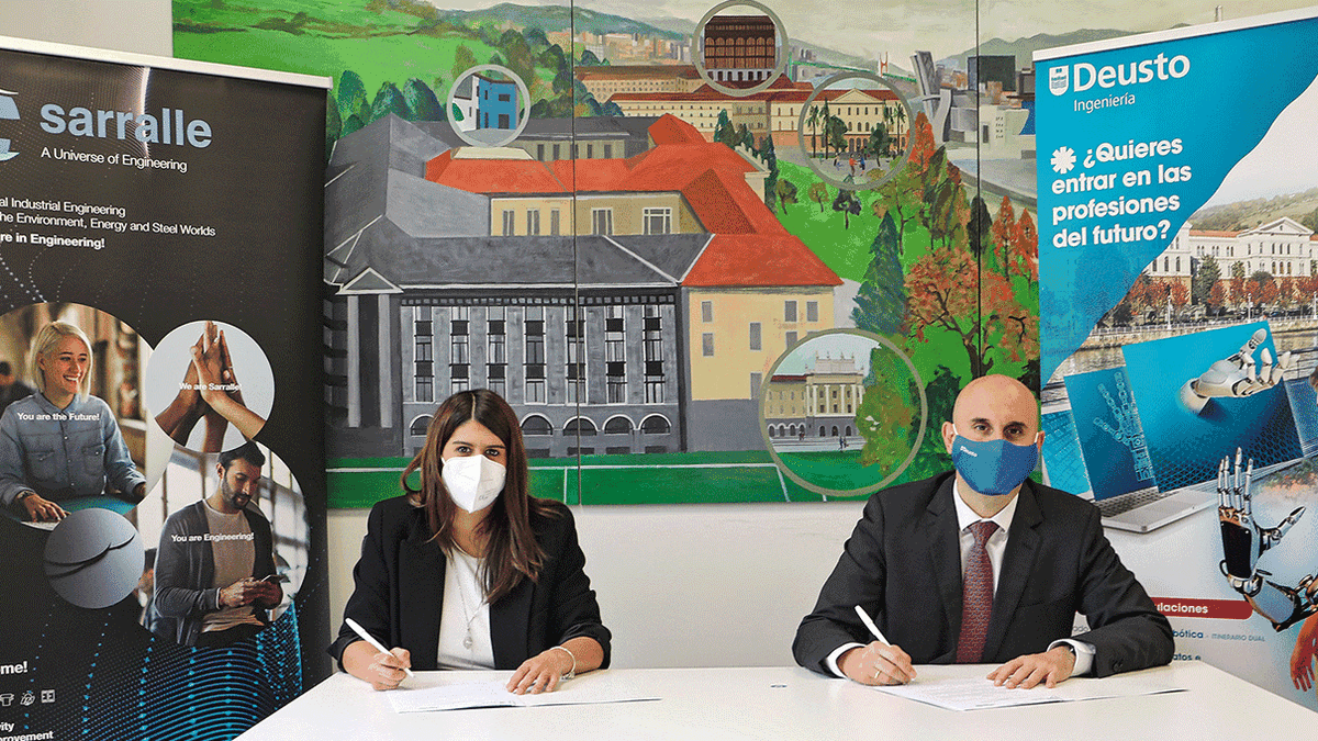El acuerdo ha entrado en vigor hoy, y lo han firmado la Directora de Recursos Humanos de Sarralle, Marta García, y el Decano de la Facultad de Ingeniería de la Universidad de Deusto, Asier Perallos