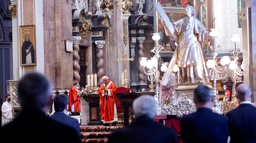 (UCV).- El cardenal arzobispo de Valencia, Antonio Cañizares, ha presidido la misa en el día que la Iglesia celebra la festividad de san Vicente Mártir, patrono de Valencia, en la que por primera vez se ha celebrado la procesión de la imagen del santo de manera enclaustrada, debido a la actual crisis sanitaria. En la homilía pronunciada durante la eucaristía, el cardenal Cañizares ha asegurado que el martirio le dice al ser humano “que está llamado a la vida eterna, a estar siempre con Dios”, que es amor: “Si solo miramos al momento presente y a ras de tierra, sin apuntar a lo alto, habremos perdido nuestro tiempo en nuestras universidades y colegios diocesanos”.