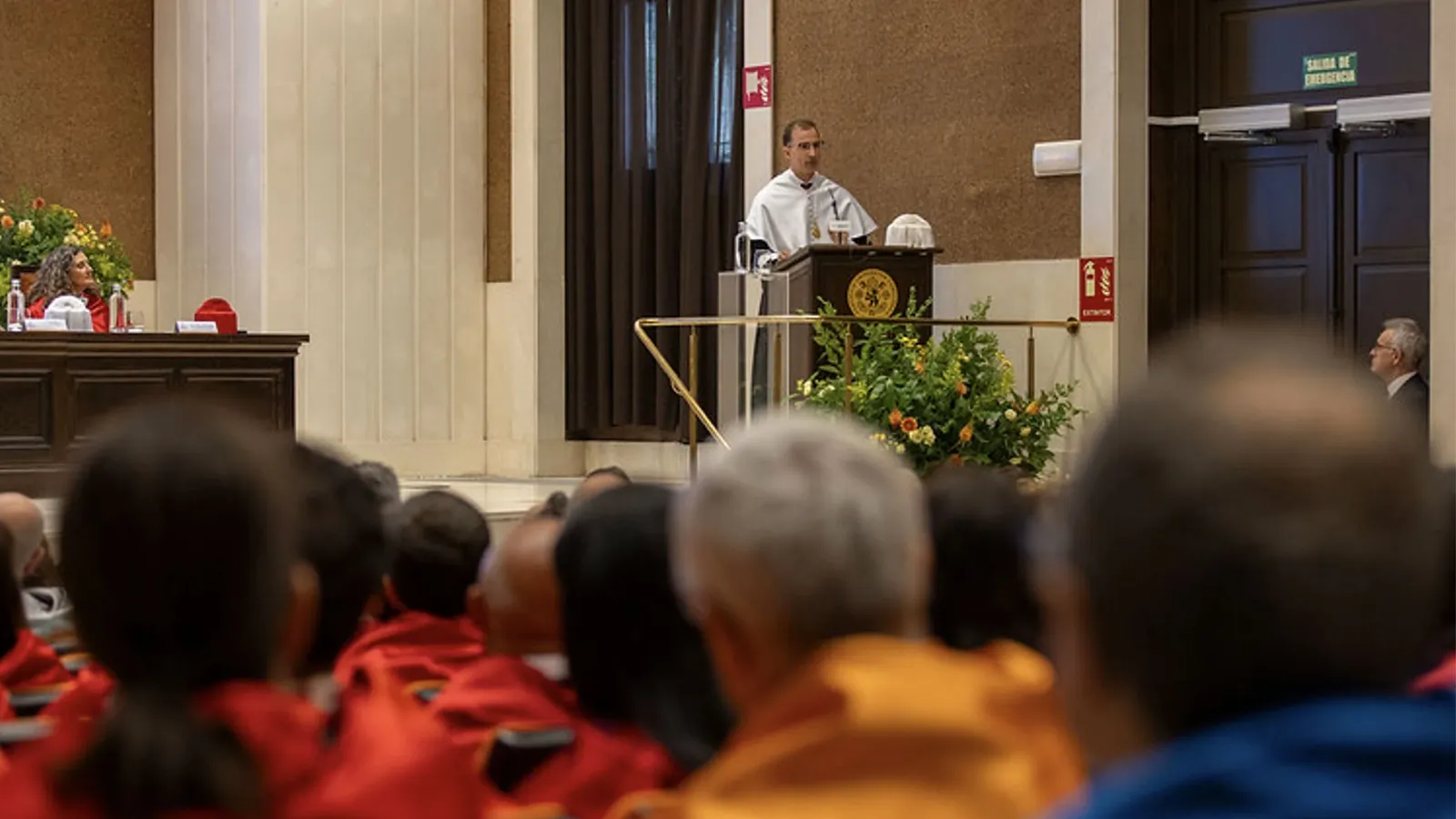 La lección inaugural corrió a cargo del profesor de la Facultad de Teología, Pedro Fernández Castelao, quien ofreció una reflexión titulada “El sol, el pozo y la balanza. Tres imágenes elementales para hablar de Dios, la creación y la vida eterna”. A través de estas tres figuras simbólicas, Castelao propuso una mirada renovada sobre la trascendencia, la condición humana y la esperanza en la vida eterna, inspirándose en las tres peticiones formuladas por el cardenal José Cobo a la comunidad universitaria: recuperar el valor de las palabras, evitar la polarización y encontrar un nuevo lenguaje para hablar de Dios.