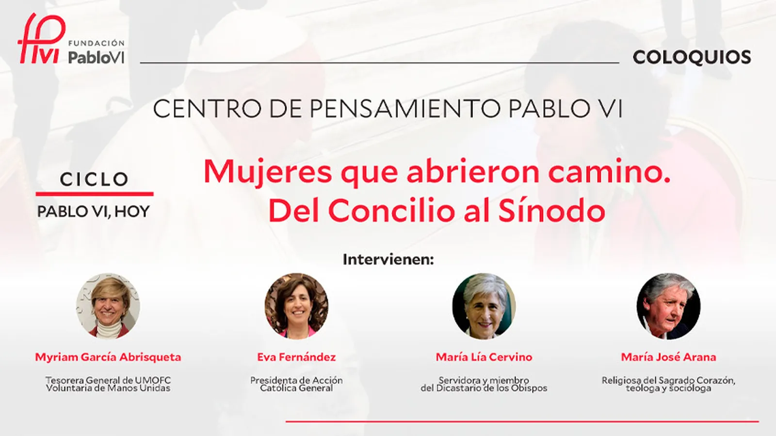 Desde Mary Salas y Pilar Bellosillo a todas las mujeres que hoy han participado con voz y voto en el Sínodo de la Sinodalidad, contarán para reflexionar sobre este asunto con Eva Fernández, presidenta de Acción Católica General; Myriam García Abrisqueta, tesorera general de la UMOFC y expresidenta de Manos Unidas; Mª José Arana RSCJ, religiosa del Sagrado Corazón; y Mª Lía Cervino, servidora y miembro del Dicasterio de los Obispos.