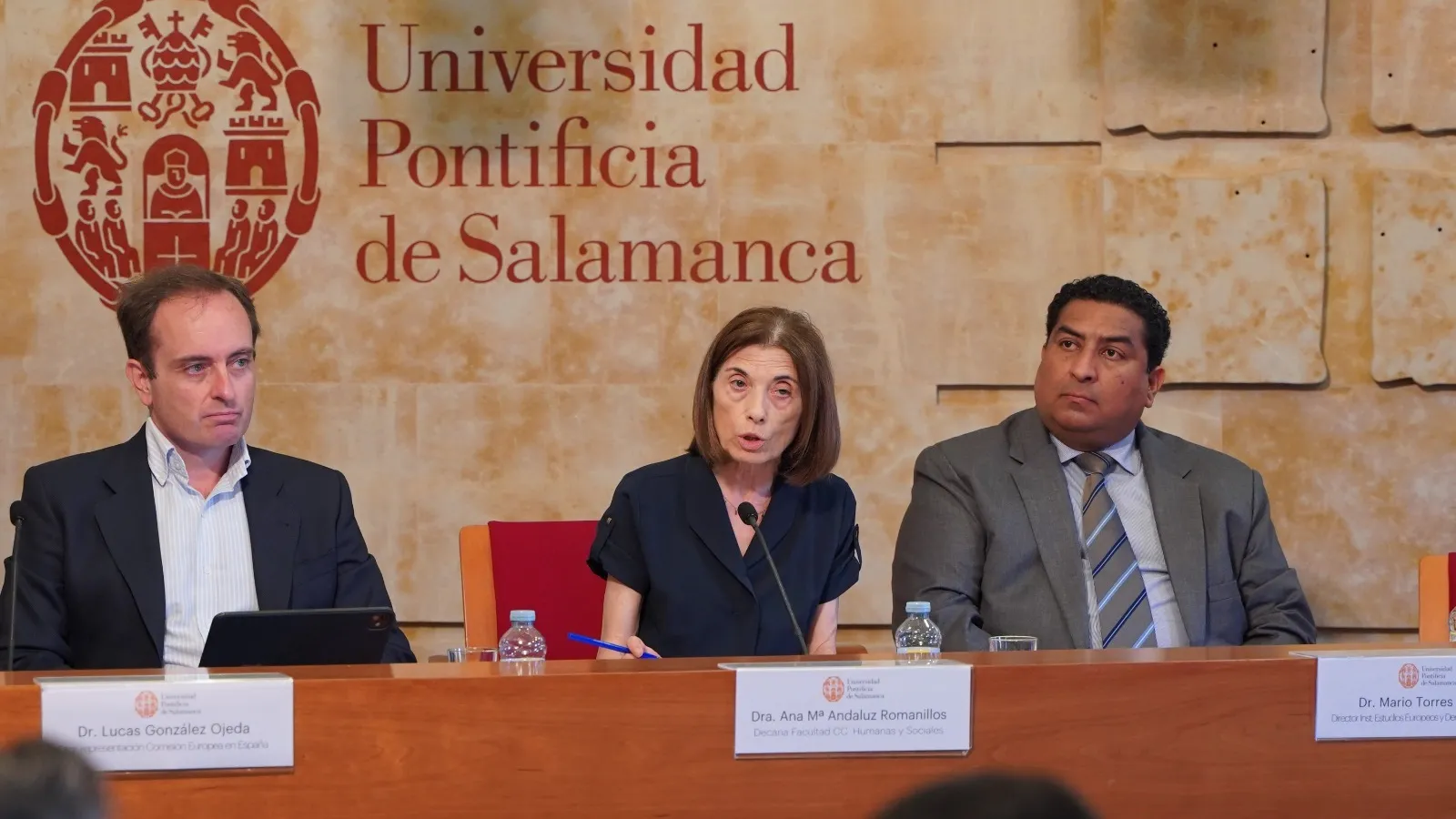 El acto ha contado con la participación de la decana de la Facultad de Ciencias Humanas y Sociales, Ana M.ª Andaluz Romanillos; el director del Instituto de Estudios Europeos y Derechos Humanos, Mario León Torres Jarrín; los directores del Máster, Jesús Manuel Conderana Cerrillo y Cecilia C. Danesi; y el director de la Representación de la Comisión Europea en España, Lucas González Ojeda, encargado de pronunciar la conferencia inaugural.