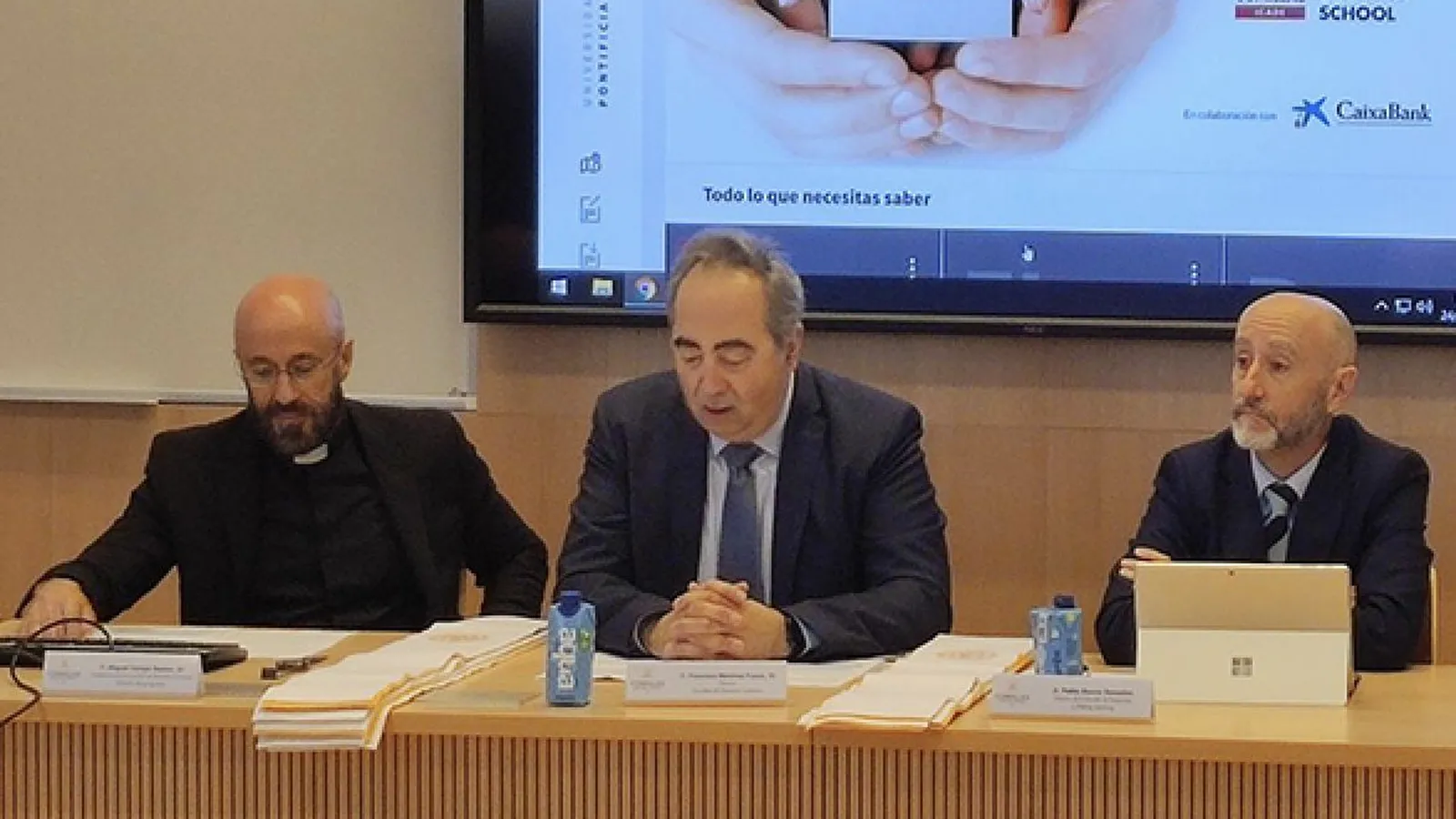 El acto de graduación tuvo lugar en el aula P. Martín de Nicolás, de la sede de Alberto Aguilera de la Universidad Pontificia Comillas, en Madrid, y estuvo presidido por el Decano de las Facultades de Derecho Canónico y Teología, P. Francisco Ramírez Fueyo, SJ. Además de Campo, en la mesa le acompañaron Pablo García González, director de la Escuela de Postgrado y Lifelong Learning, y David Alonso de Linaje, responsable de Instituciones Religiosas y Fundaciones - Banca Privada de Caixabank y profesor en el curso.