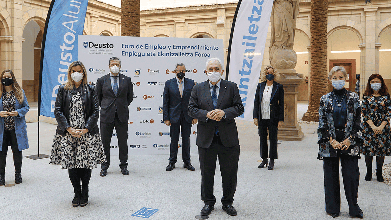 La Universidad de Deusto ha abierto su nuevo Foro de Empleo y Emprendimiento y lo ha hecho de forma virtual con la participación de más de 100 empresas y entidades de todas las áreas de conocimiento. Desde hoy, el alumnado puede interactuar con los responsables de estas organizaciones, subir sus curriculums y acceder a las distintas ofertas de trabajo a través de una plataforma que también permite tener entrevistas y participar en una amplia variedad de actividades, charlas y presentaciones cuyo objetivo es mejorar la empleabilidad.