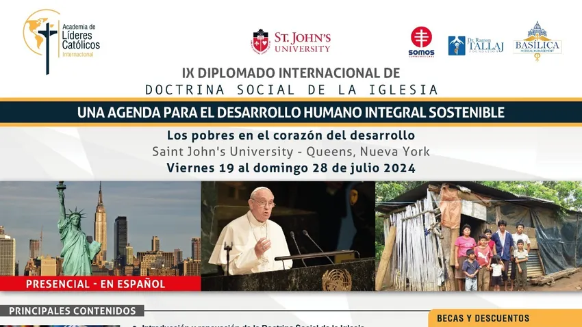 Del 19 al 28 de Julio se realizará en la ciudad de Nueva York, un curso de Doctrina Social de la Iglesia del más alto nivel para abordar el Desarrollo Humano Integral Solidario y Sostenible que permita discernir las oportunidades, desafíos y peligros de la agenda 2030 de Naciones Unidas.
