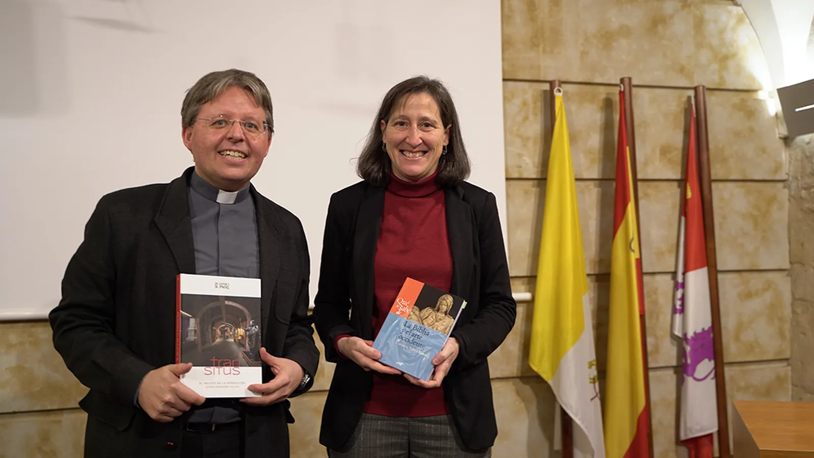 Los profesores de la Facultad de Teología de la Universidad Pontificia de Salamanca (UPSA) Carmen Yebra Rovira y Gaspar Hernández Peludo han presentado esta mañana sus últimas publicaciones