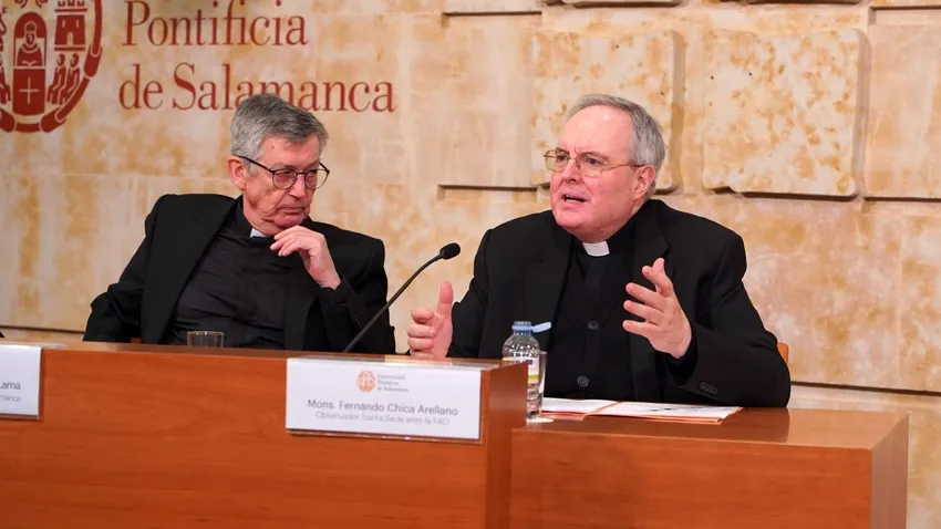 Por su parte, el observador permanente de la Santa Sede ante la FAO, Mons. Fernando Chica Arellano, ha comenzado su intervención concretando que “deben sentirse ustedes herederos y continuadores de una historia en la que las cuestiones esenciales del ser humano siguen llamando nuestra atención. Los jóvenes necesitan auténticos maestros y personas abiertas a todas las ramas del saber que sepan escuchar, así como personas convencidas de la capacidad humana de avanzar hacia la verdad”. En este sentido, ha añadido que “la doctrina de la Iglesia invita al pueblo de Dios a favorecer la interacción entre la ciencia y la visión cristiana sin perder el contacto con el tiempo”.