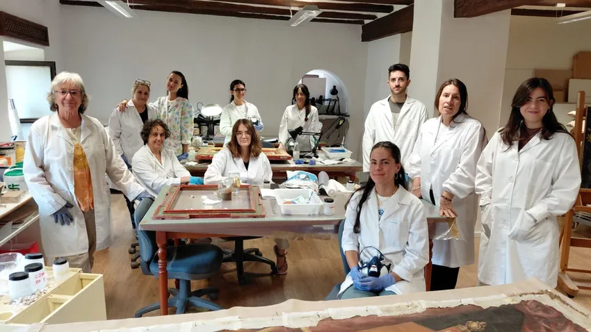 Los alumnos, guiados por el equipo docente, no solo intervienen sobre obras concretas, sino que comparten diagnósticos y decisiones técnicas, aprendiendo también del trabajo de sus compañeros. Esta metodología enriquece notablemente el proceso formativo y refuerza la dimensión colectiva del taller.