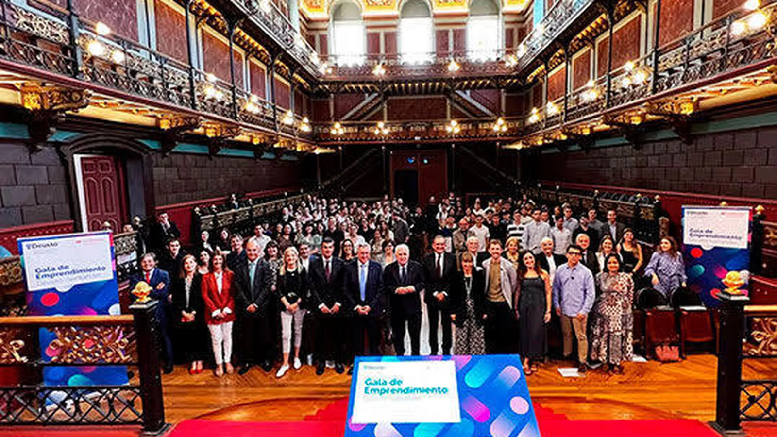 (Universidad de Deusto).- La Universidad ha celebrado hoy jueves, 20 de octubre, la Gala de Emprendimiento Deusto-Santander para reconocer a los más de 1.400 participantes en las formaciones en innovación y emprendimiento, impulsadas por Deusto Emprende y Banco Santander a través de Santander Universidades. El acto ha contado con la presencia del rector de la Universidad de Deusto, José María Guibert, el presidente de Santander Universidades, Matías Rodríguez Inciarte, y el vicerrector de Emprendimiento y Relaciones Empresariales, Víctor Urcelay.