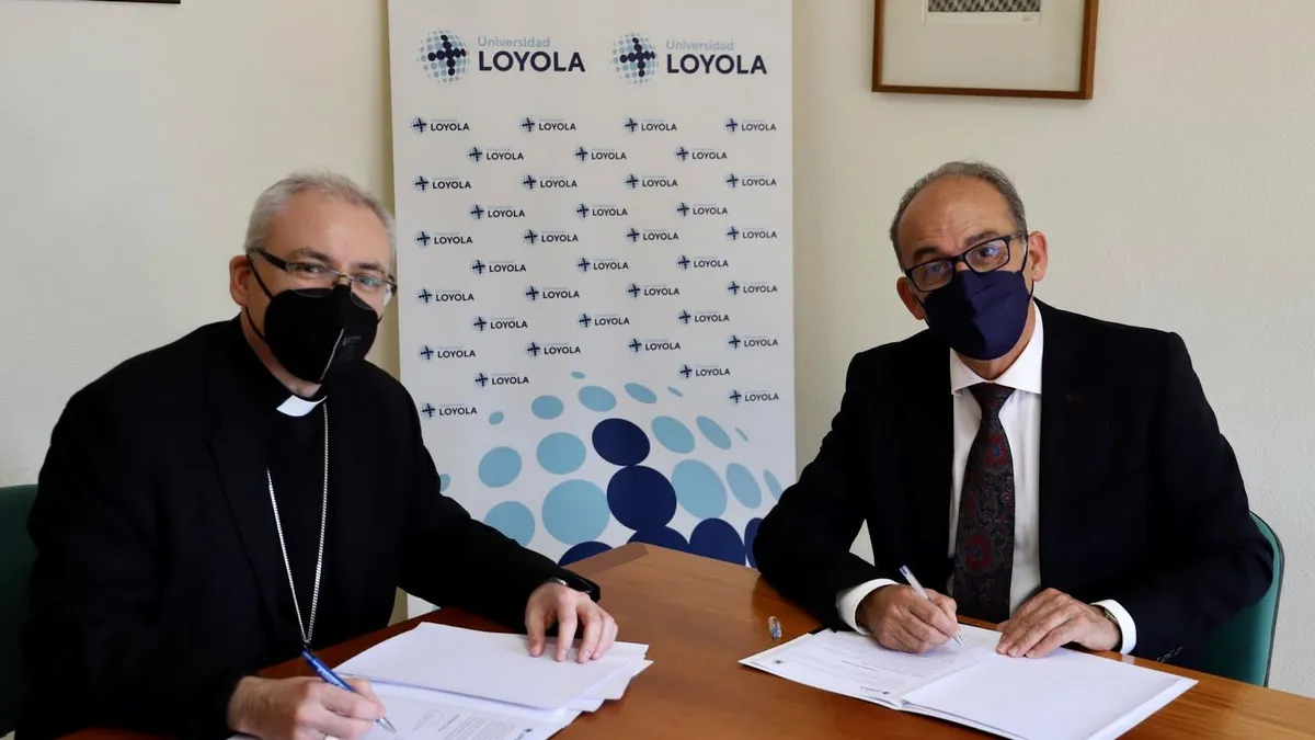 (Universidad Loyola)-. El Obispo de Jaén, D. Sebastián Chico Martínez, ha realizado una visita institucional a la Facultad de Teología de la Universidad Loyola en Granada, en el marco de la cual se ha firmado el convenio complementario a la afiliación canónica entre el nuevo Instituto Teológico San Eufrasio de la Diócesis de Jaén y la Facultad. En virtud de este convenio la Facultad otorgará los títulos de Baccalaureatus in Theologia a los estudiantes del Instituto que superen la formación correspondiente, en conformidad con la legislación canónica vigente.