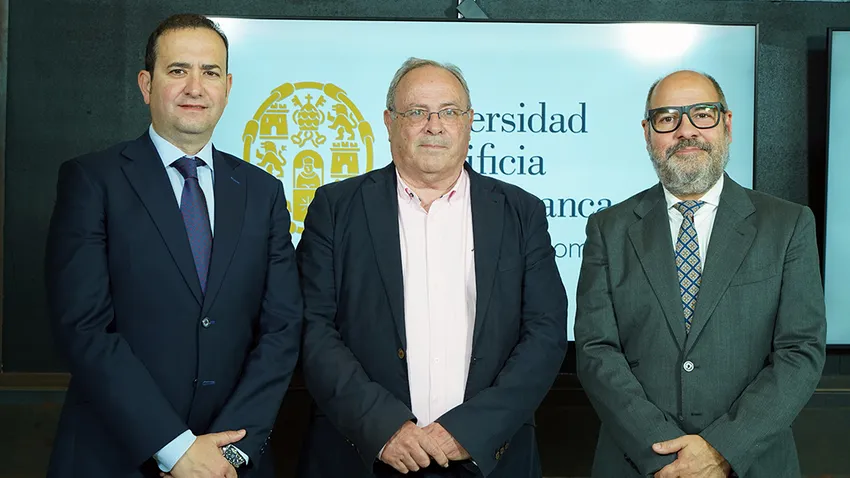 El encuentro ha sido inaugurado por el vicerrector de Investigación e Innovación Educativa, Pedro Sangro, acompañado por el codirector del Congreso, Javier Sierra, y el decano de la Facultad de Comunicación, Fernando Galindo