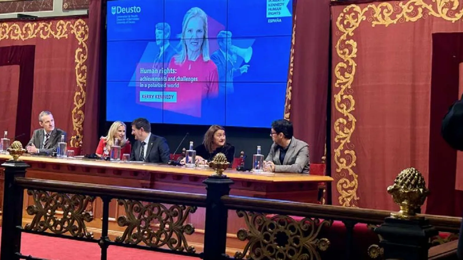 (Universidad de Deusto).- En su primera visita a Bilbao para reforzar la colaboración en materia de derechos humanos con instituciones vascas y la Universidad de Deusto, la abogada y activista Kerry Kennedy, presidenta de Robert F. Kennedy Human Rights, ha ofrecido hoy viernes, 25 de octubre, una conferencia en la que ha puesto el foco en las víctimas de guerras y genocidios, cuyos derechos humanos han sido y siguen siendo cruelmente violentados. Al respecto, ha lamentado que sea su país, Estados Unidos, quien aún hoy sigue proporcionando armas con las que millones de civiles están siendo asesinados en Gaza.