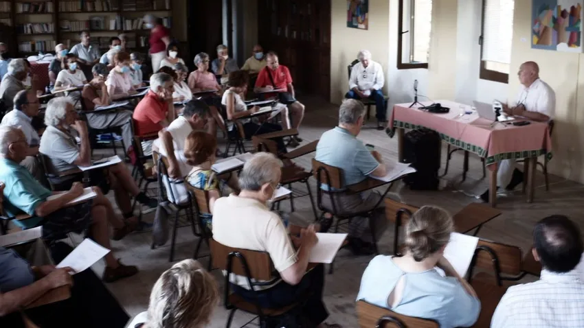 Seguimos en Montesclaros reflexionando teológicamente y dialogando apasionadamente sobre unos temas de plena actualidad en nuestra iglesia. El calor es soportable pues estamos a 900 metros de altura en las montañas del sur de Cantabria, por algo se llama Montesclaros. Además, los muros de piedra del vetusto convento mantienen una temperatura ideal. Los que han venido de Madrid, Valladolid o Guadalajara no se lo pueden creer.