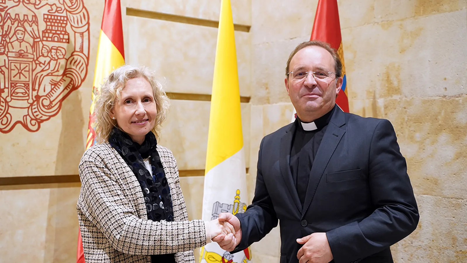Ha sido firmado esta mañana por la rectora de la UPSA, Mirian Cortés Diéguez, y por el director de la comisión de Relación con Universidades de la Facultad de Teología del Norte de España y vicario general de la Diócesis de Burgos, Carlos Izquierdo Yusta